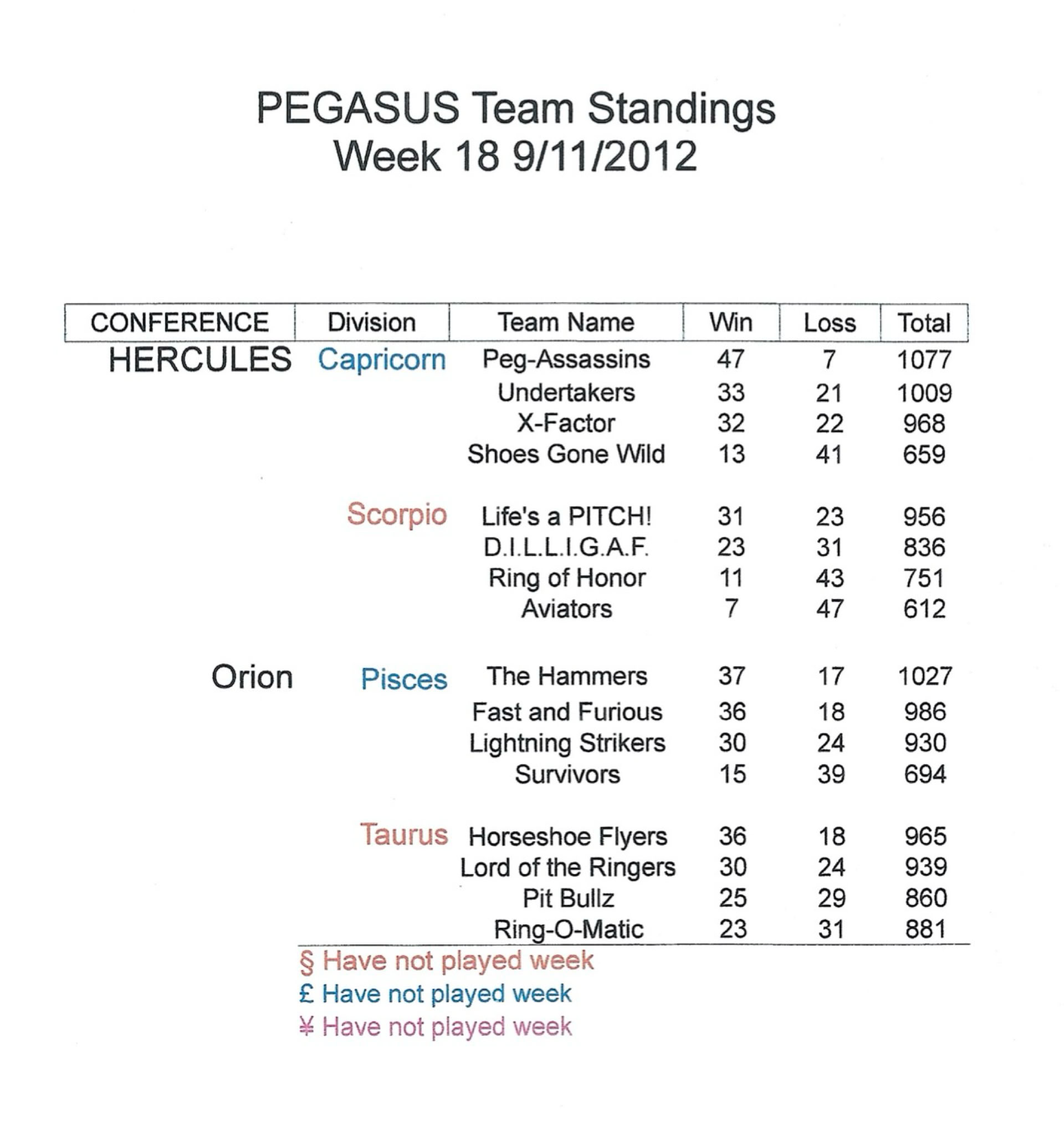 2012 Standings