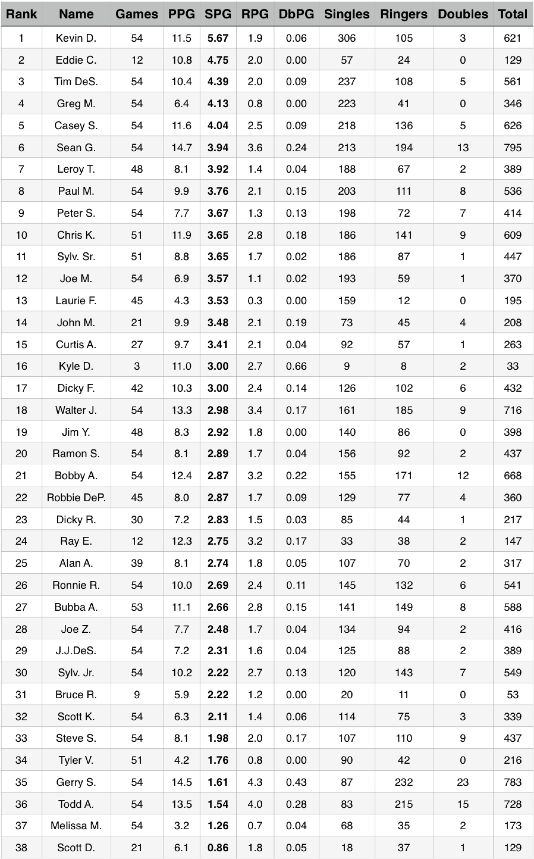 PPG     SPG     RPG     DbPG     Total     Top Ten