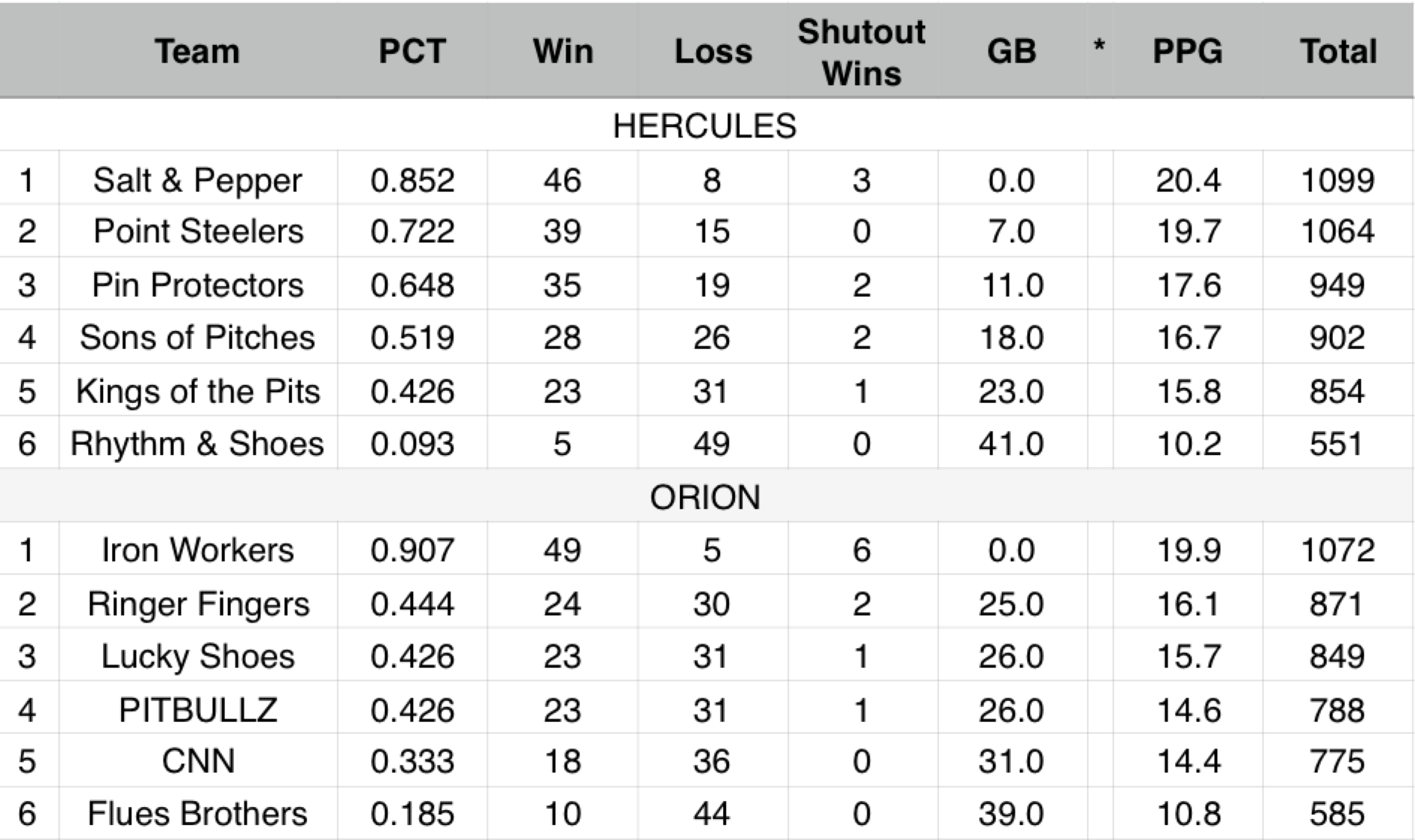 Standings