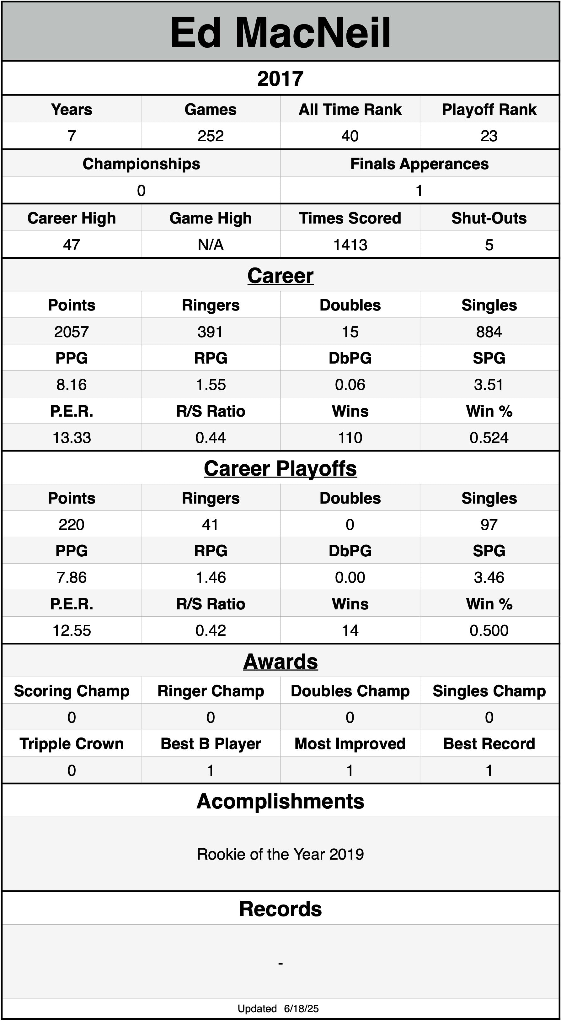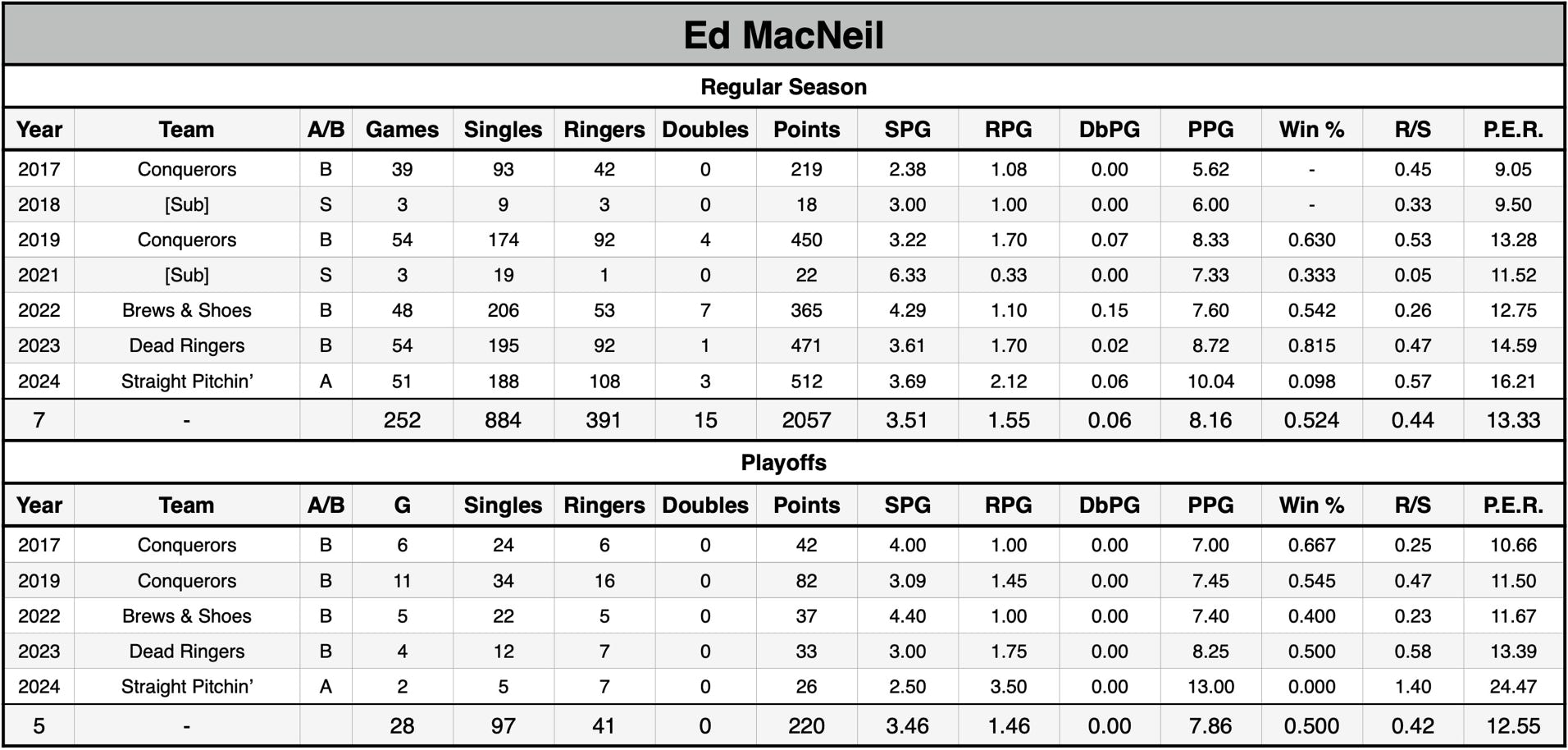 P.E.R. may currently be listed lower than actual P.E.R. for seasons without shut-out data