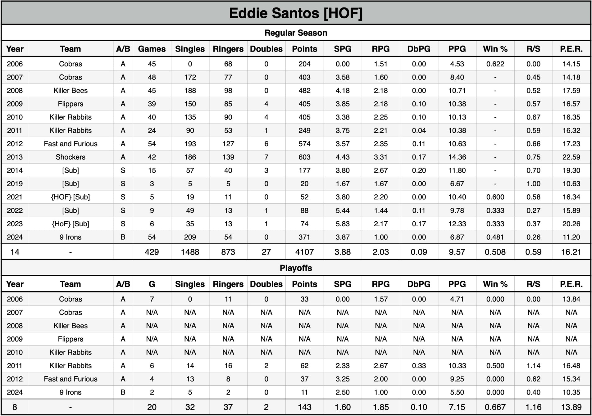 P.E.R. may currently be listed lower than actual P.E.R. for seasons without shut-out data