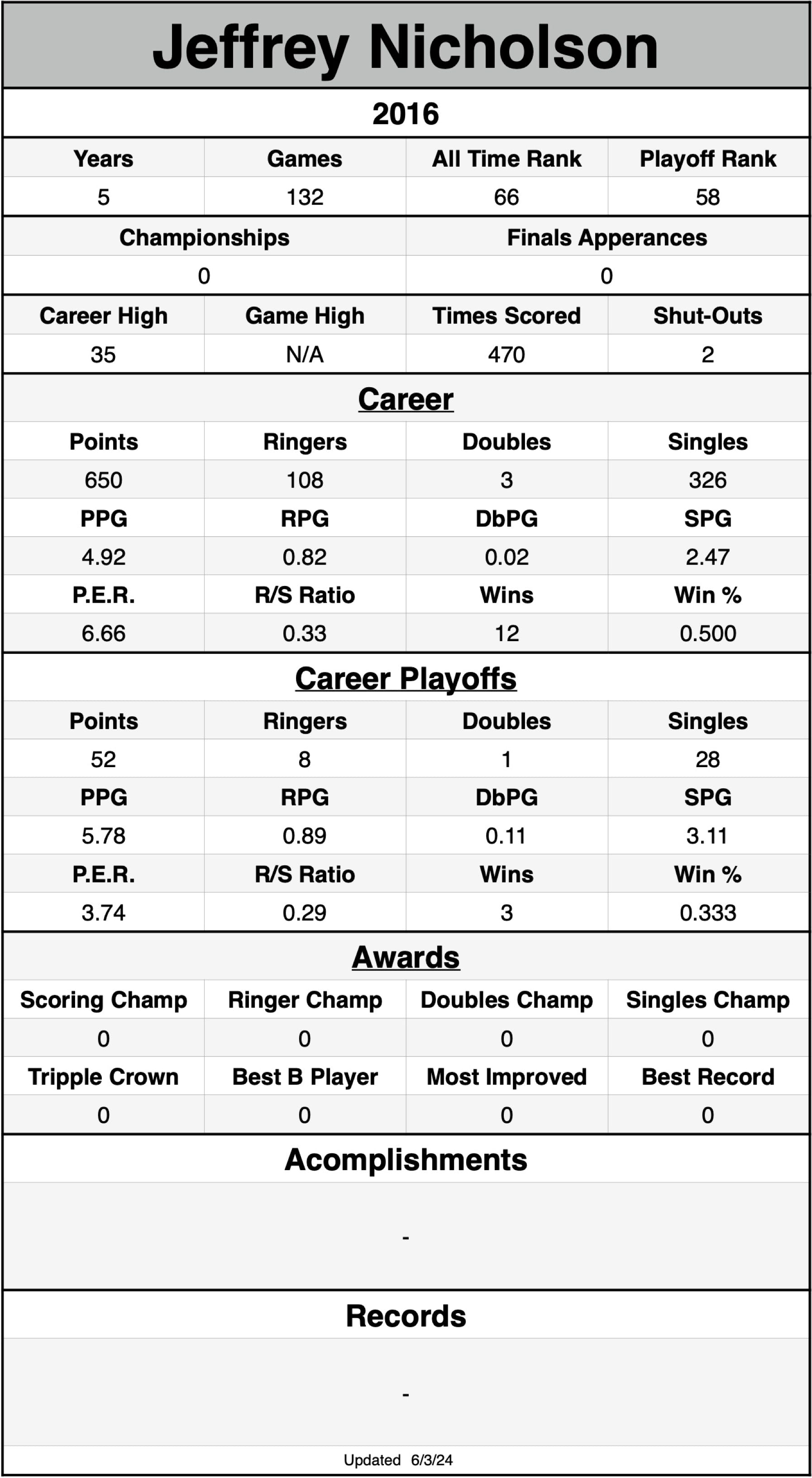 P.E.R. may currently be listed lower than actual P.E.R. for seasons without shut-out data
