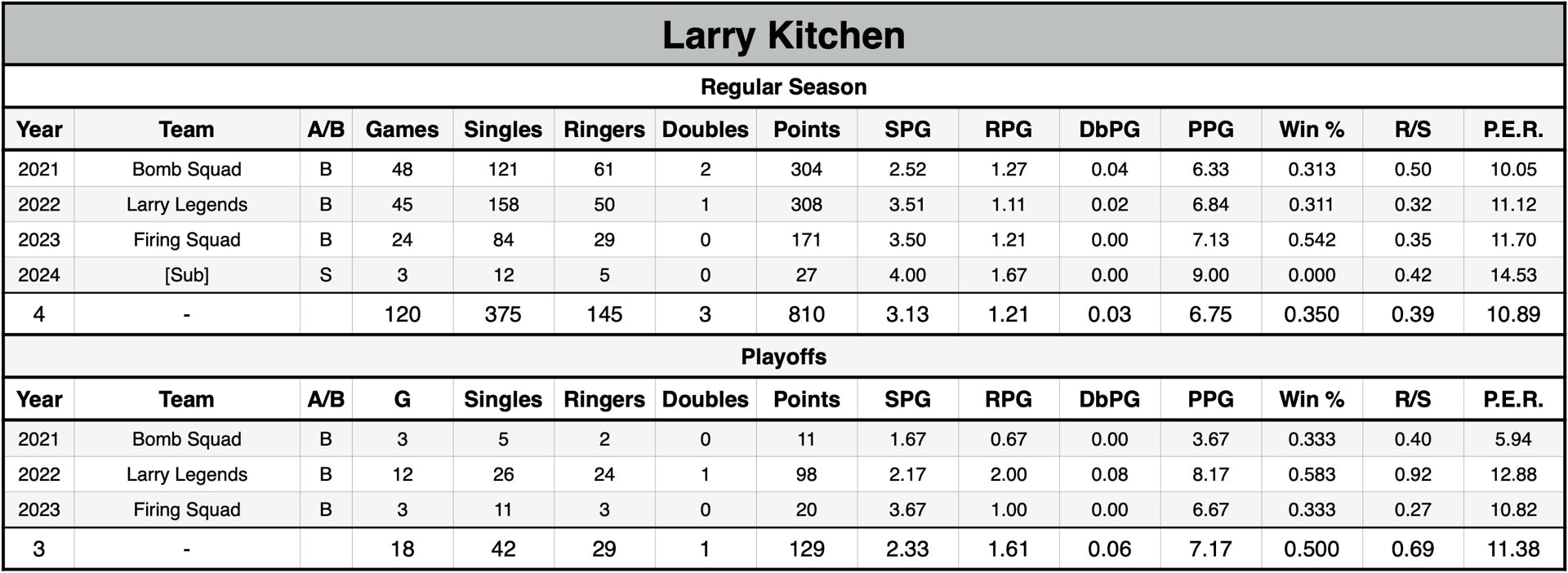 P.E.R. may currently be listed lower than actual P.E.R. for seasons without shut-out data