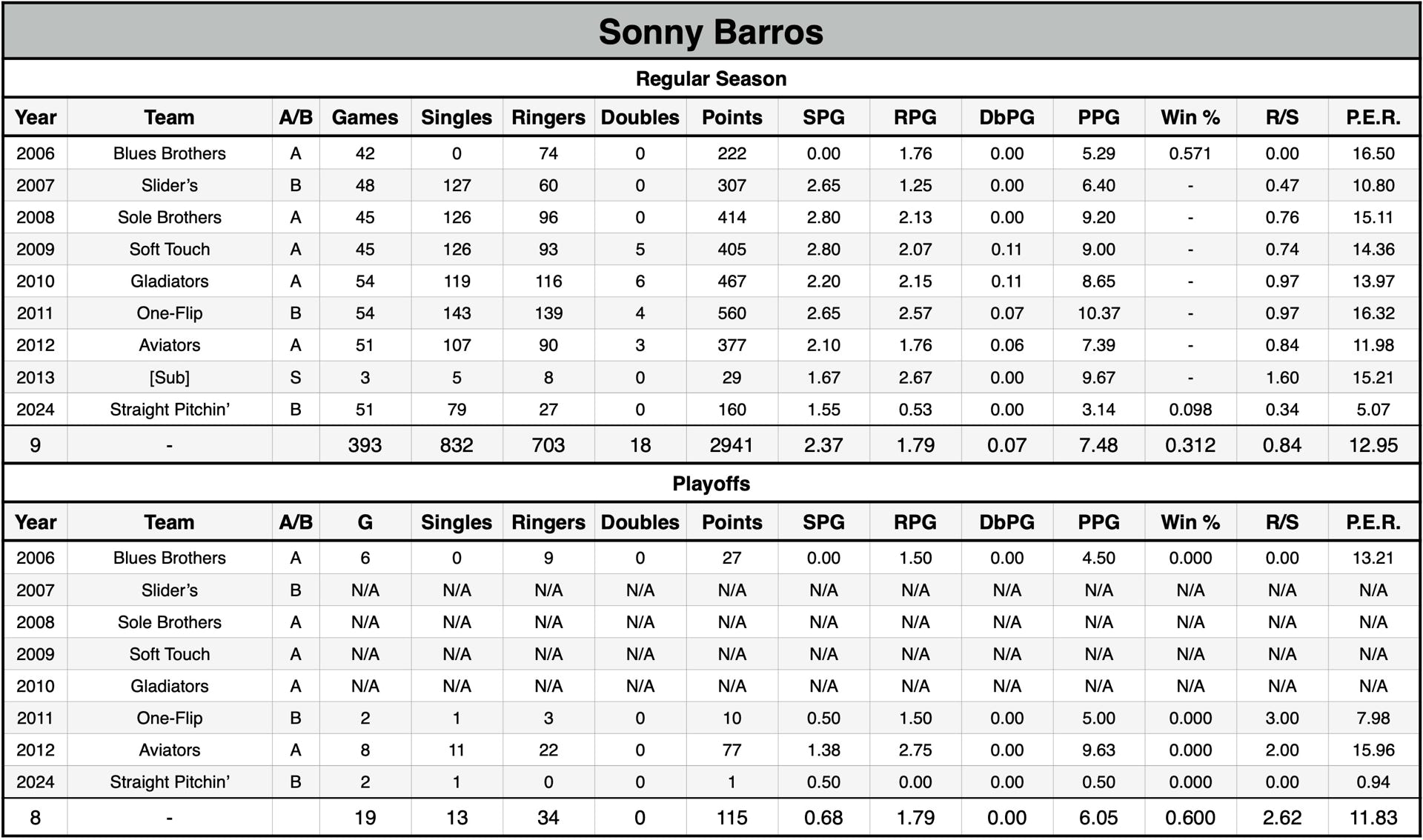 P.E.R. may currently be listed lower than actual P.E.R. for seasons without shut-out data