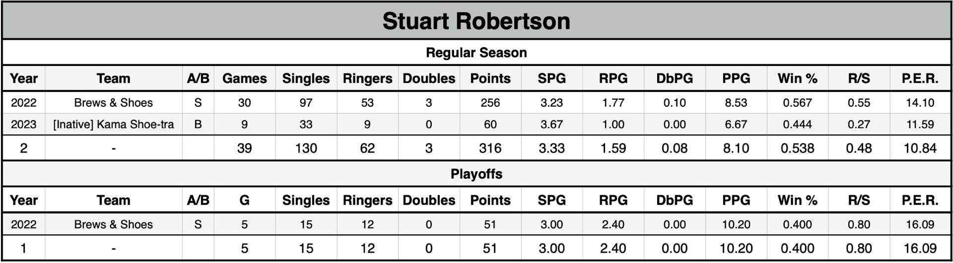 P.E.R. may currently be listed lower than actual P.E.R. for seasons without shut-out data