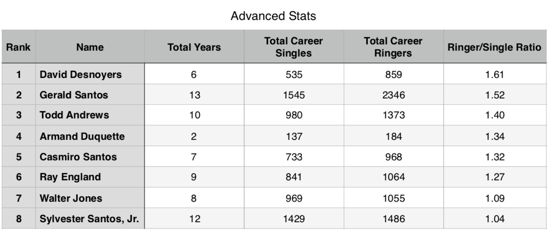 Ringer/Single Ratio