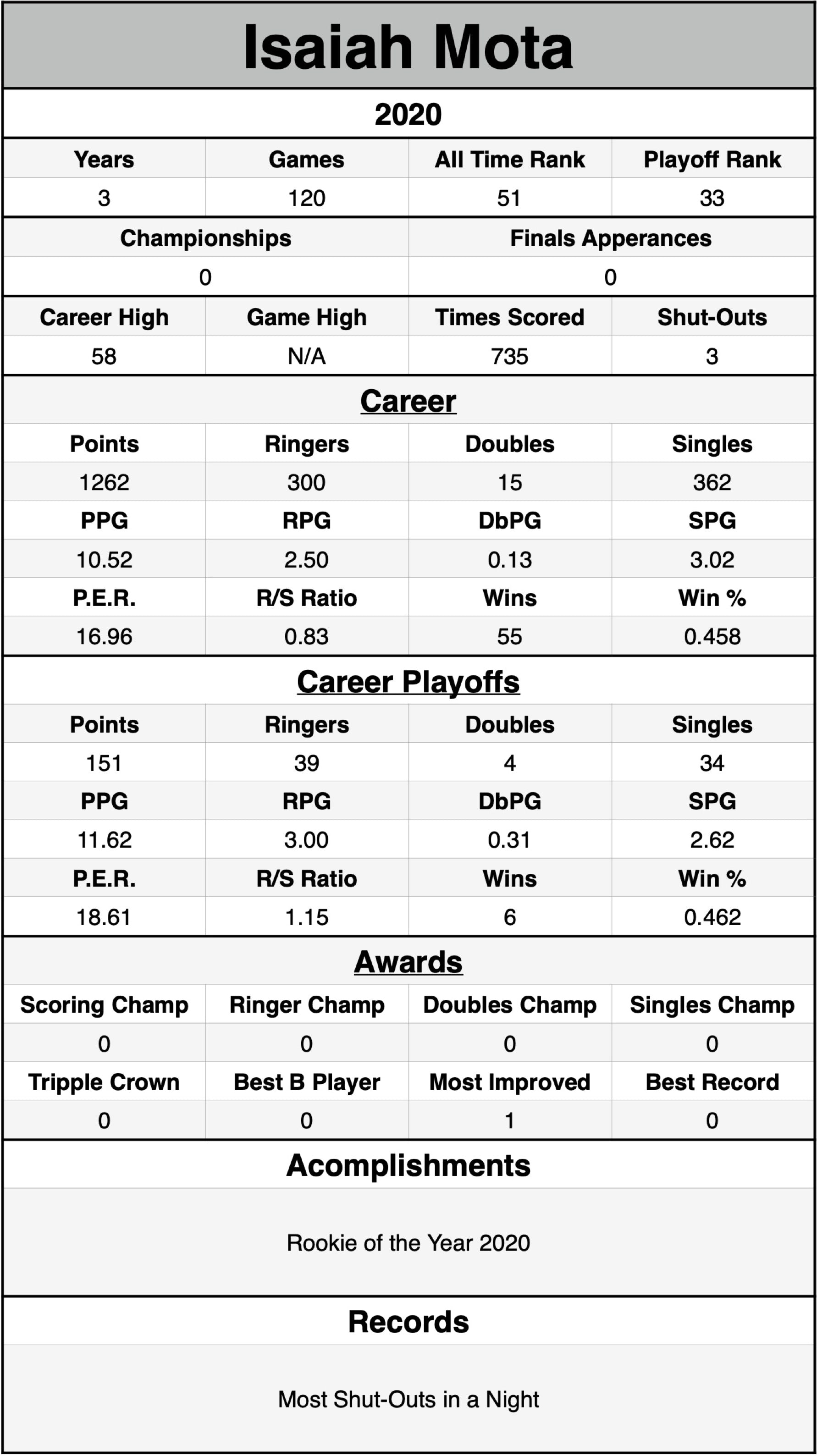 P.E.R. may currently be listed lower than actual P.E.R. for seasons without shut-out data