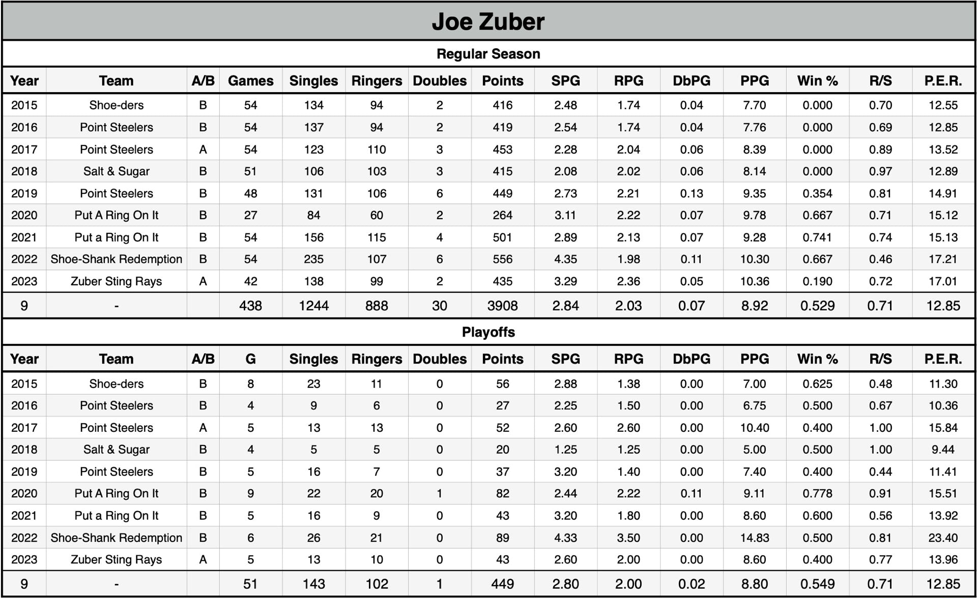P.E.R. may currently be listed lower than actual P.E.R. for seasons without shut-out data