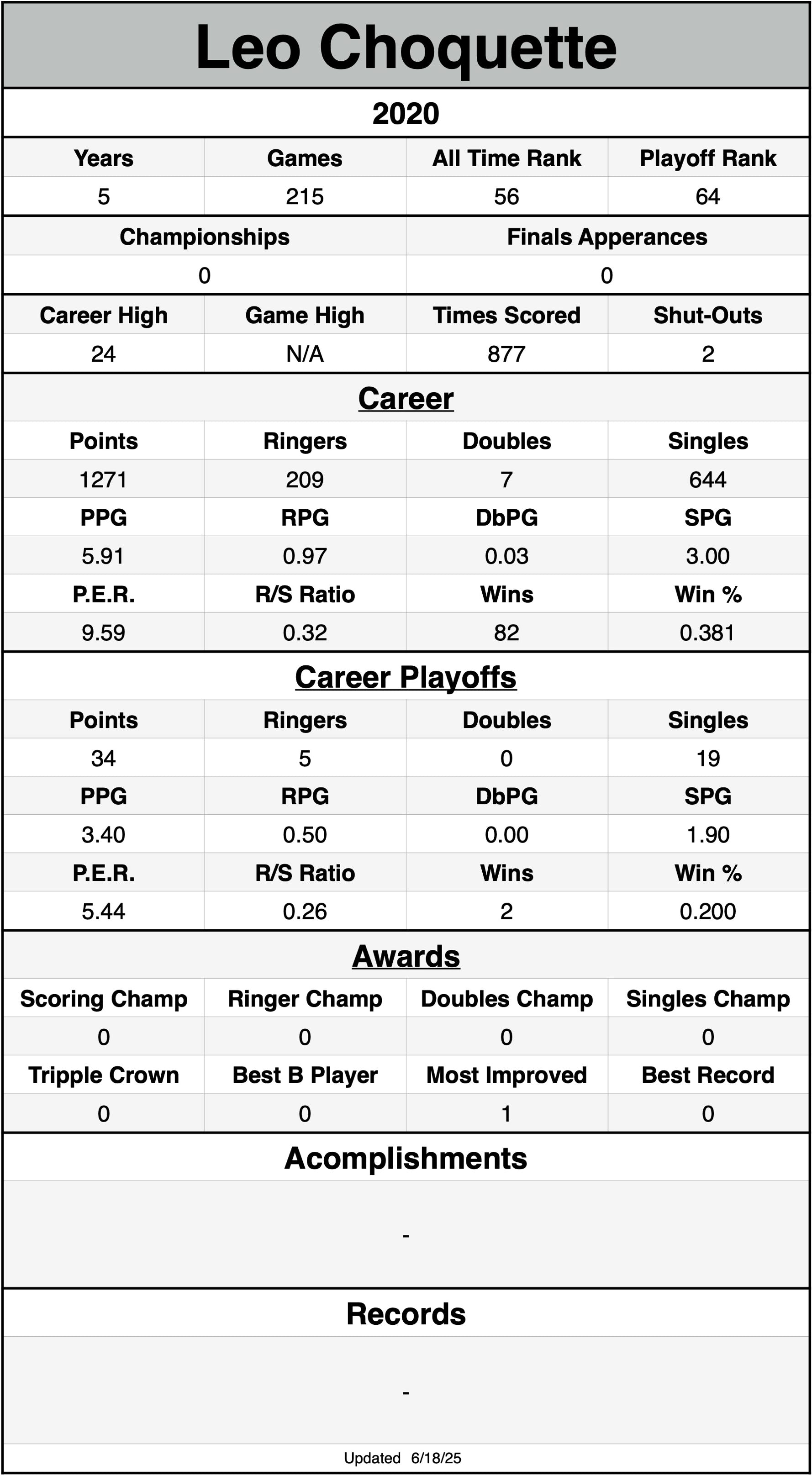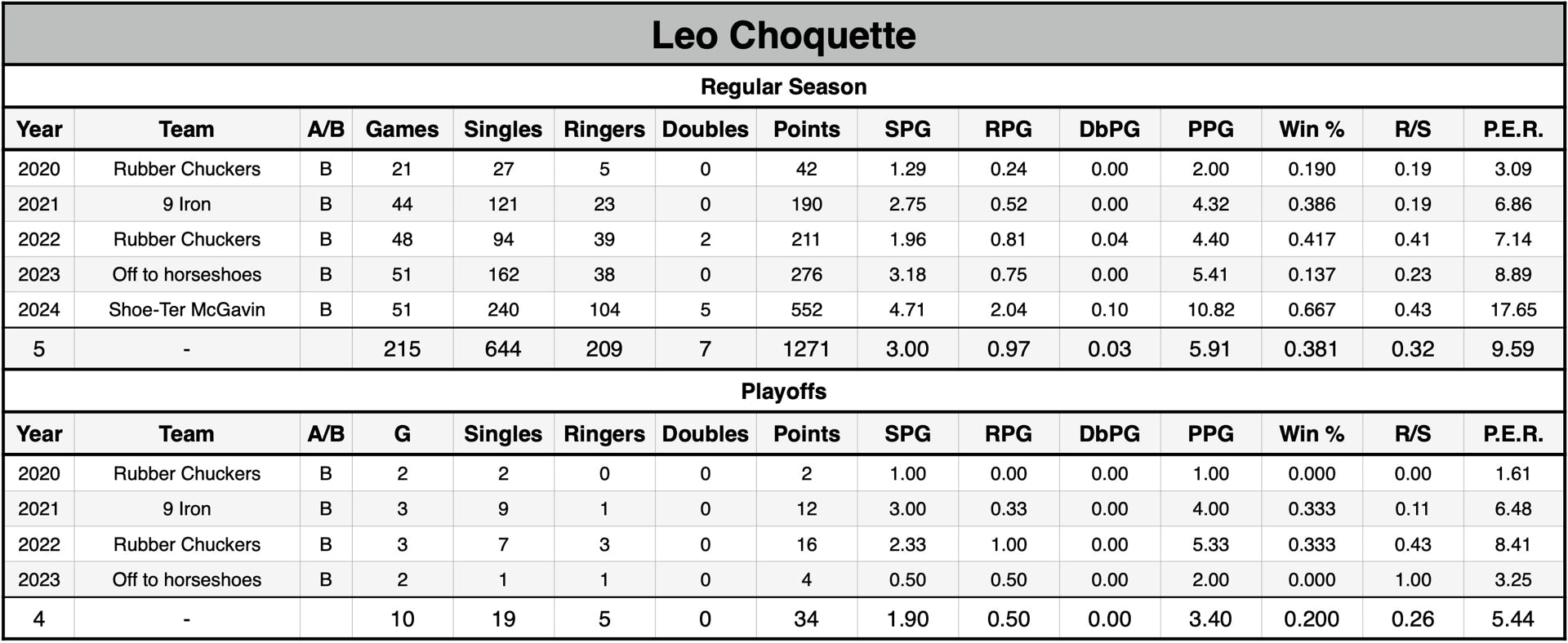 P.E.R. may currently be listed lower than actual P.E.R. for seasons without shut-out data