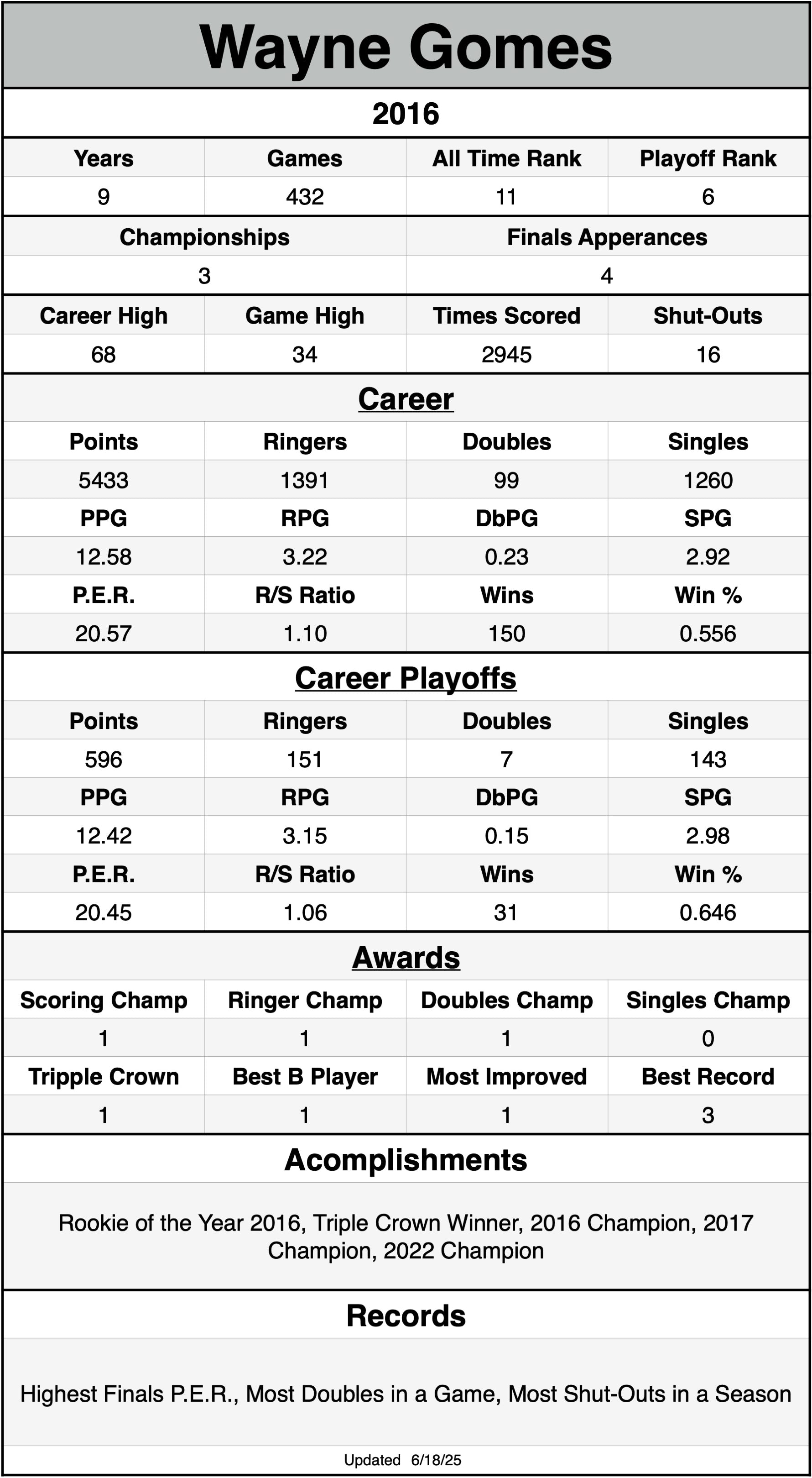 P.E.R. may currently be listed lower than actual P.E.R. for seasons without shut-out data